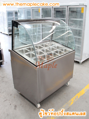 ทางร้านเดอะเมเปิ้ล ยินดีให้บริการจำหน่ายตู้แช่ท๊อปปิ้ง ตู้โชว์ท๊อปปิ้ง ตู้แช่ผลไม้สแตนเลส ทรงกระจกโค้ง